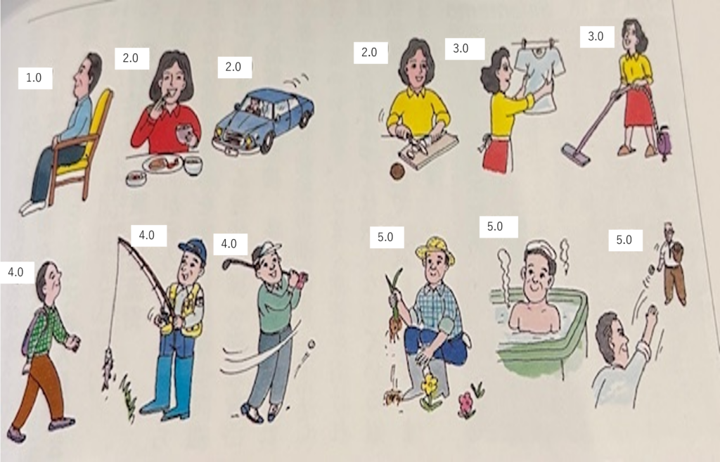Y夫さんの場合、退職後非常勤職員として週4日間通勤で事務仕事に従事していました。心機能低下は軽度、他に不整脈等の合併症は無く、肺や腎臓等の合併症も無かったため元の仕事に復帰することを最終目標としました。医師は4メッツを最大仕事量と設定しました(図)。理学療法士は、Y夫さんの運動時の自覚症状や心拍数の増加を参考にしながら徐々に運動量や回数を上昇させていきました。