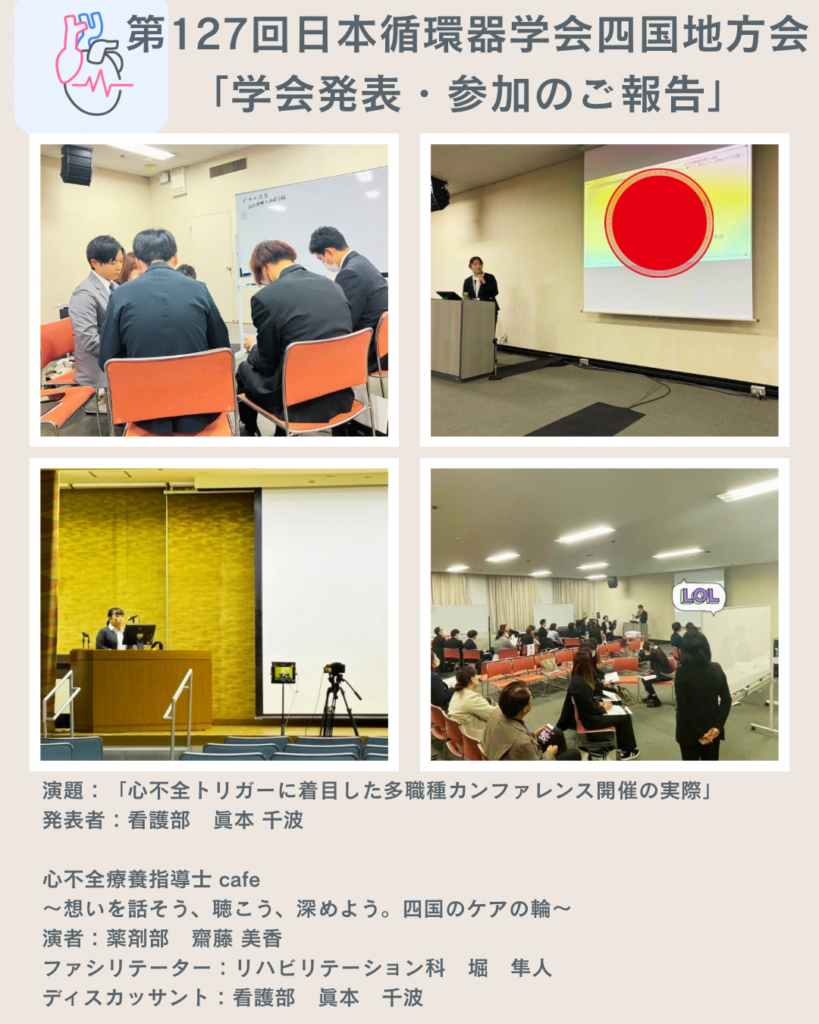 当院職員は、令和7年12月7日に開催された「第127回日本循環器学会四国地方会」において、看護師・薬剤師・理学療法士が、日頃の取り組みについて発表を行いました。